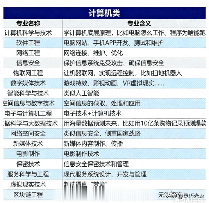 最近帮表弟填志愿,才发现计算机类现在有18个专业。以前只知道计算机科学与技术、软件工程,现在什么虚拟现实、区块链、密码科学全冒出来了。他爸妈天天刷文章,看得越多越迷糊,最后干脆问我这干了几年IT的亲戚。